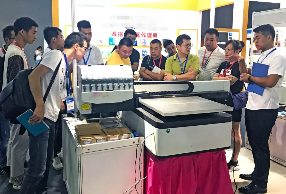場館外驕陽似火,點燃著大眾的熱情,不少客戶紛紛駐足在主通道1135諾彩展位前,只為一睹諾彩小型uv打印機的風采。
