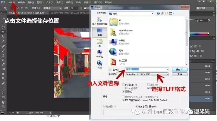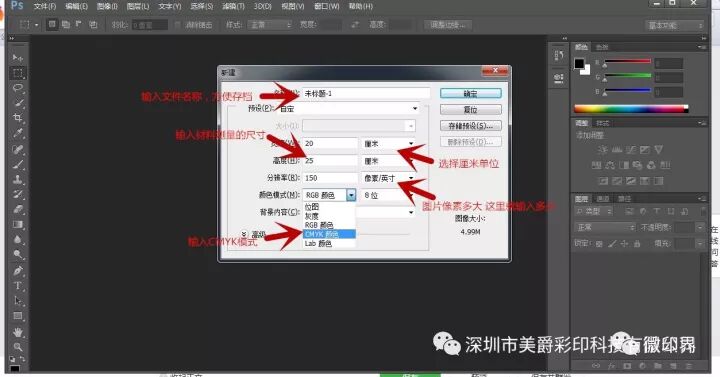2打開PS軟件:左上角->文件->新建文件,輸入材料尺寸:寬度,長度,顏色模式(CMYK模式),背景內容(透明);像素:按照你要打印照片的像素為主