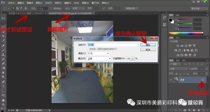 3把照片拖至PS中打開需要打印的照片,雙擊->確定,就可取消鎖定圖層