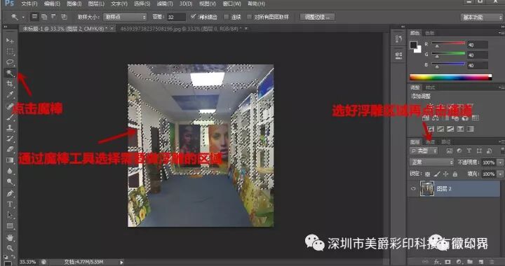 5.選取圖層界面,選中圖層,經過魔棒工具選取需要做浮雕的區域